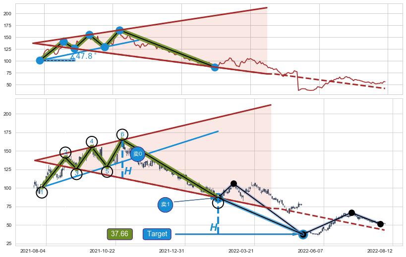 ➢ AI预测: 假定反转启动后, 第❷目标位置(2022-12-06, 56.84)
