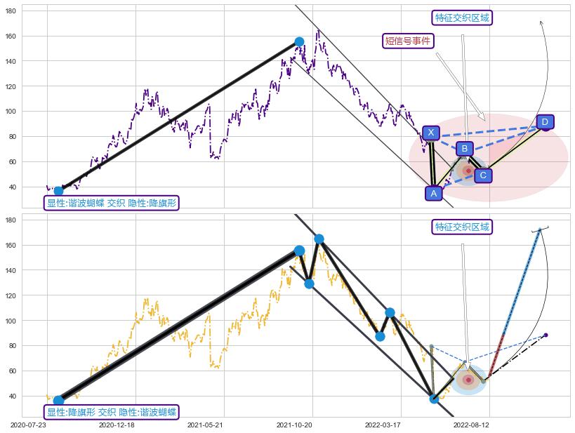➢ 谐波蝴蝶属【短级别信号事件】降旗形属【长级别信号事件】长短周期组合信号事件, 短长事件长度比14.99%