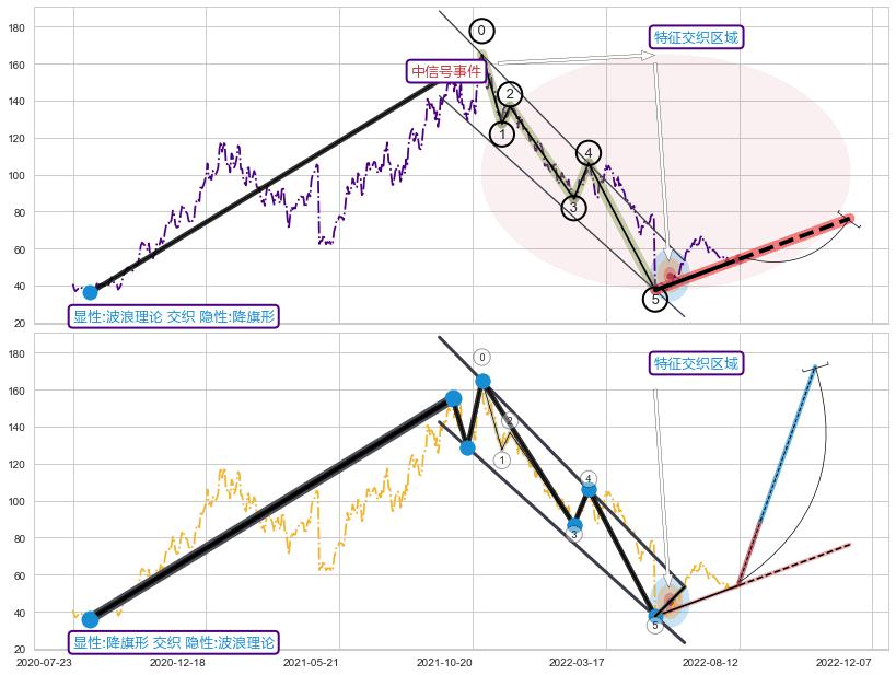 ➢ 波浪理论属【中级别信号事件】降旗形属【长级别信号事件】中长周期组合信号事件,中长事件长度比43.40%