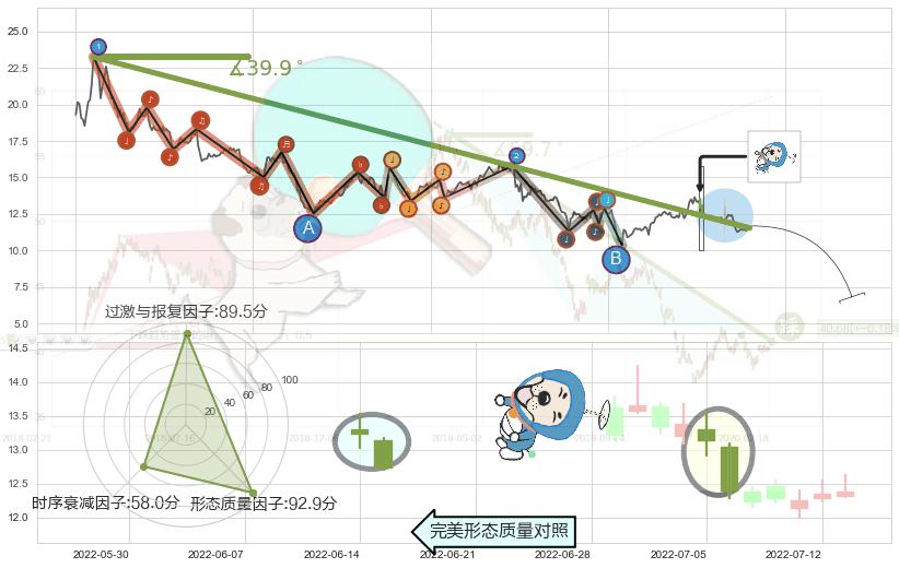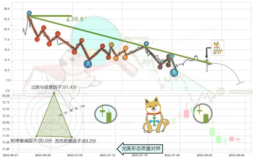 从2021-02-01至2022-06-29,共包含339个交易日,阶段股价下跌-46.54%,阶段股价变动位移路程比: 1 : 12,下跌趋势角度: 39.9