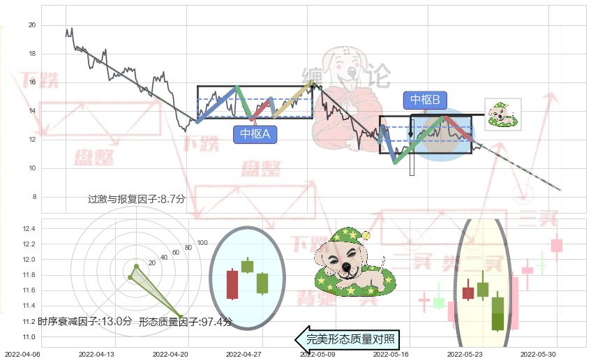 ➢ 下跌螺旋桨 🔜 缠论中枢点破位中枢B支撑下拉 综合量化分数:44.81 【偏空】