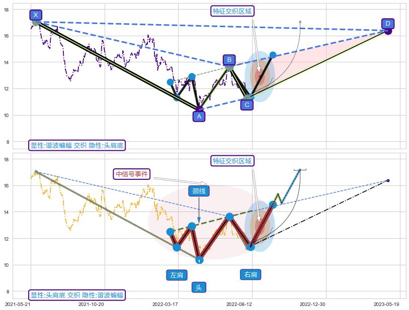 ➢ 头肩底属【中级别信号事件】谐波蝙蝠属【长级别信号事件】中长周期组合信号事件,中长事件长度比48.30%