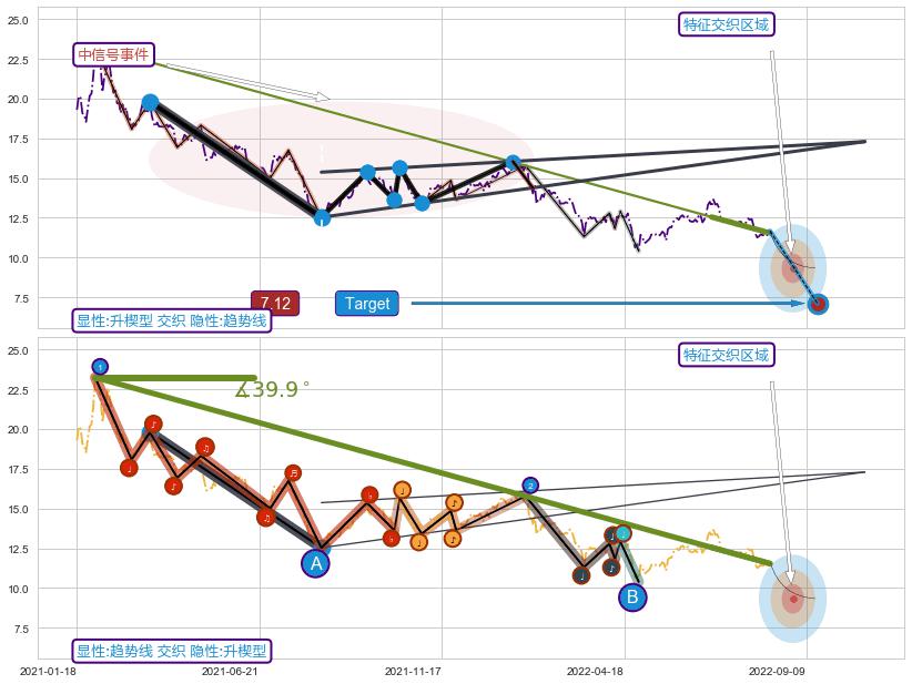 🦴 长线均值回复组合短线趋势跟踪[强阻力信号]2021-02-01-2022-06-29下跌趋势依然成立(下跌趋势跟踪依然存在),短线价格略微上行反弹(均值回复猜想),即将接近下跌趋势提供的未破位阻力价格:11.54。