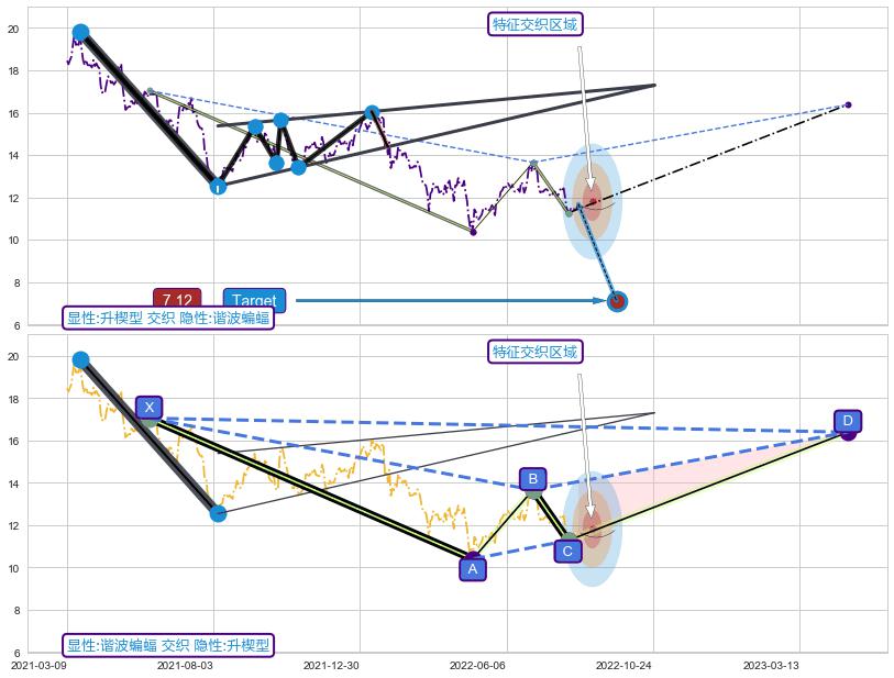 ➢ 未完成【蝙蝠】形态起点X: 2021-06-01, 已到达C点: 2022-08-03, 预测最终D点: 2023-04-27, 共478交易日