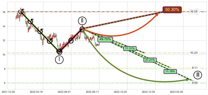 ♘ 支撑价格位10.62,可信任强度55.67%,距离最后交易2022-08-12形成的收盘价格11.68相差 -9.11%
