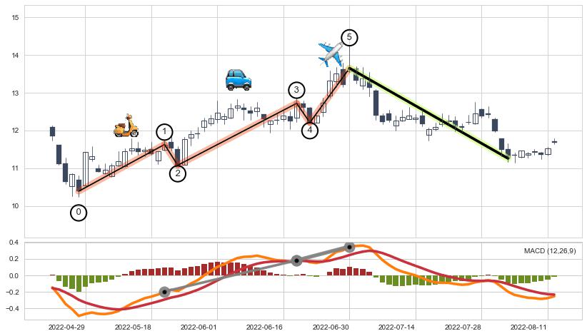 ➣ 波浪理论:猜想达到c点后小回调终止反转上涨 → 上涨 → 【拐点】临近 → 阶段均值回复结束后继续大周期趋势跟踪