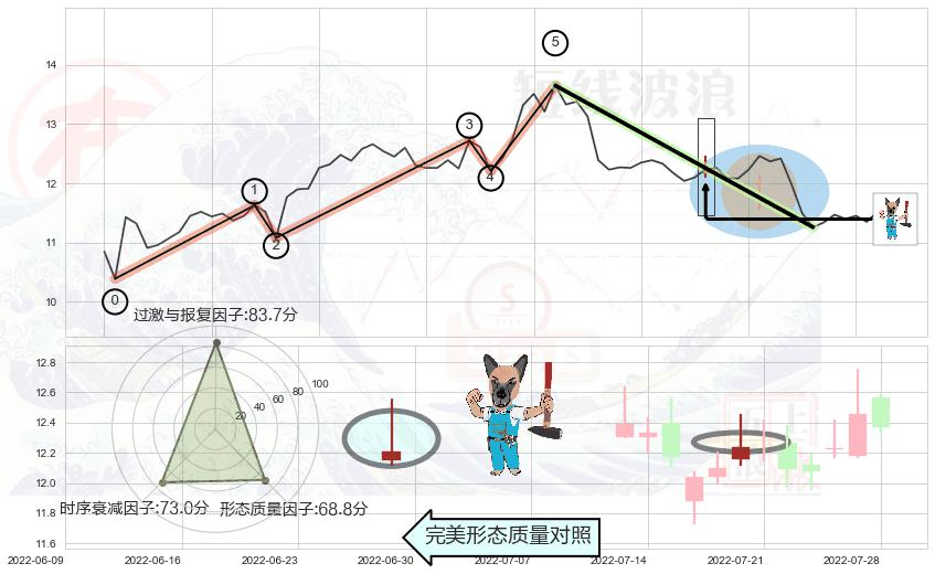 ➢ 看跌(高位倒锤头)流星线 🔜 波浪理论击穿破位C点继续下跌 综合量化分数:46.50 【中性】