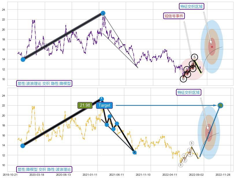➢ 波浪理论属【短级别信号事件】降楔型属【长级别信号事件】长短周期组合信号事件, 短长事件长度比15.64%