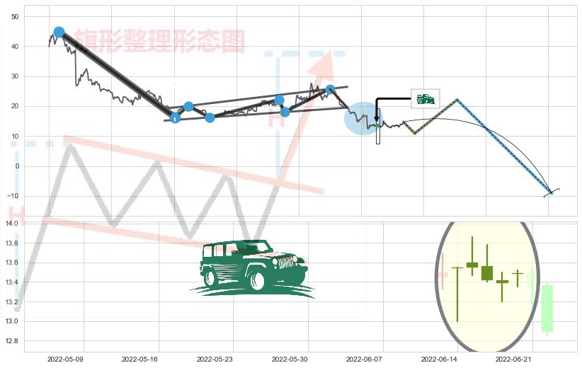 ➢ 收盘价(2022-05-27: 13.64 )→再次回踩→第二根k线高点(2022-05-23: 13.04 )