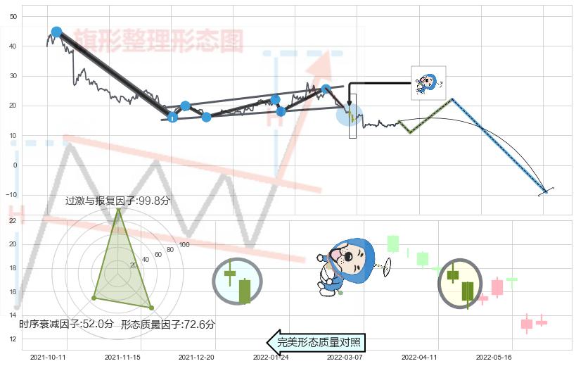 ➢ 下跌螺旋桨 🔜 升旗形支撑破位转换阻力下跌 综合量化分数:42.09 【偏空】