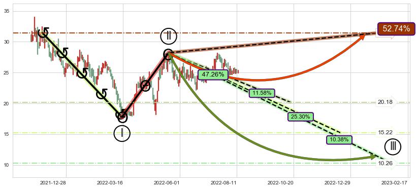 ➣ 循环浪继续向下【平均值】位置(2022-12-16, 15.22),匹配聚类样本比例53.54%, 可能性概率25.30%
