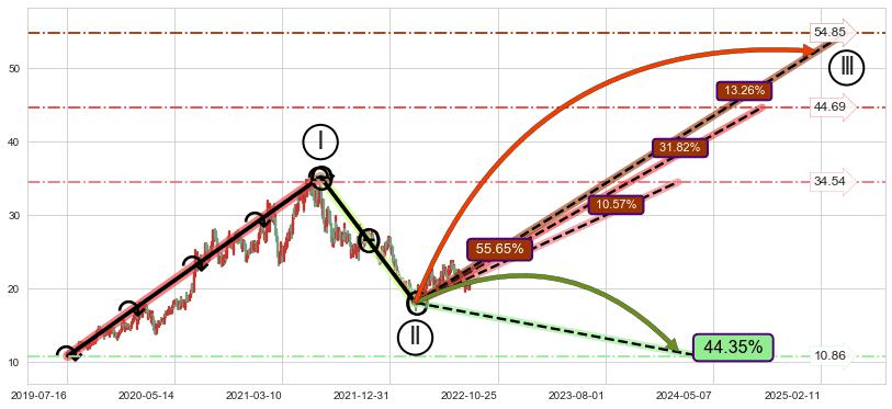 ➣ 曙光初现形态 + 波浪理论c点回调终止反转上涨信号叠加后【反向回撤率】极低,【看多】信号叠加【存续影响极大】
