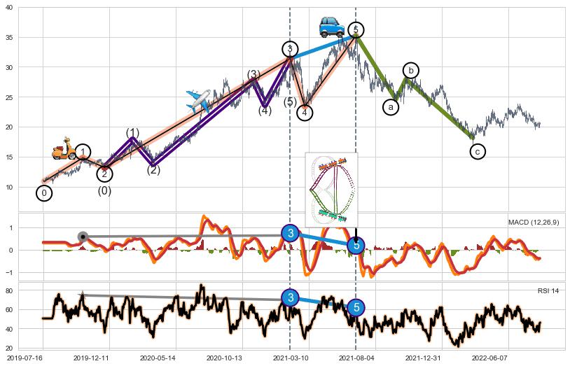 ➣ 上升三部曲(升势三鸦) + 波浪理论c点回调终止反转上涨信号叠加后【反向回撤率】极低,【看多】信号叠加【存续影响极大】