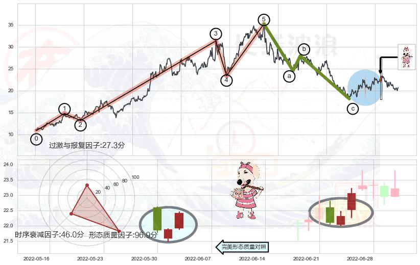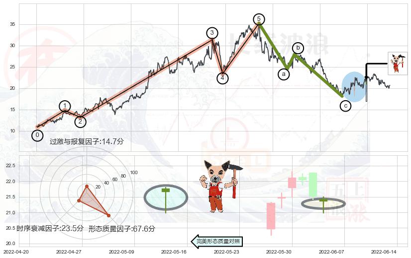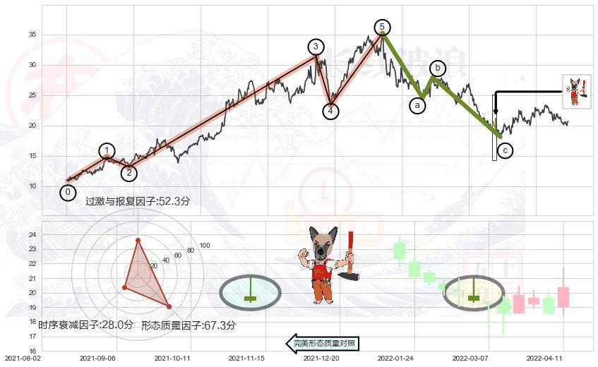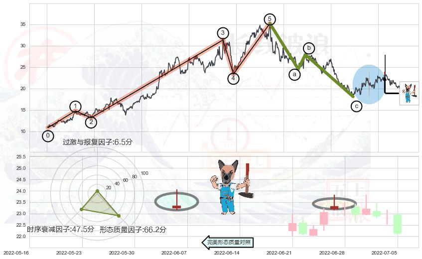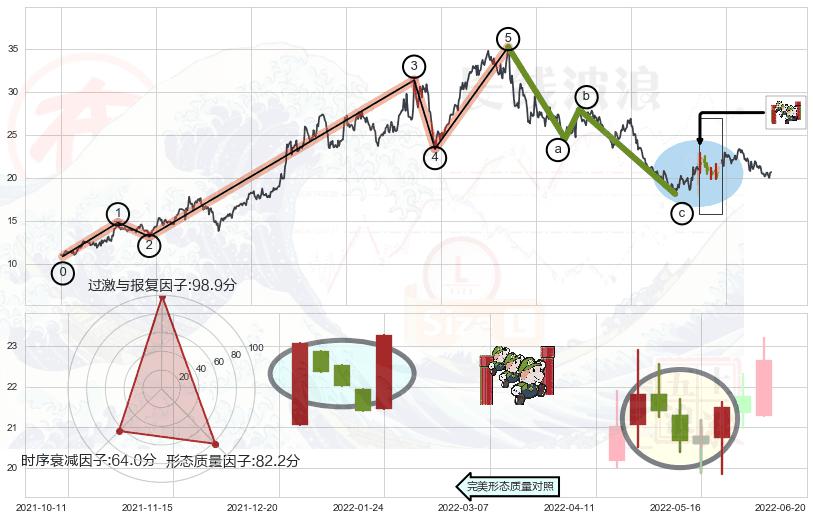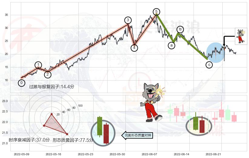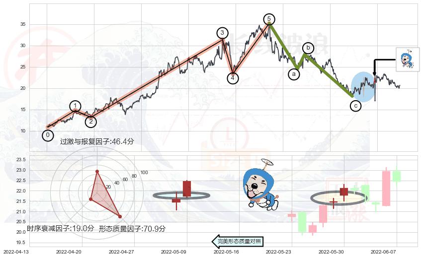 ➢ 看跌(高位倒锤头)流星线 🔜 波浪理论击穿破位C点继续下跌 综合量化分数:47.82 【中性】