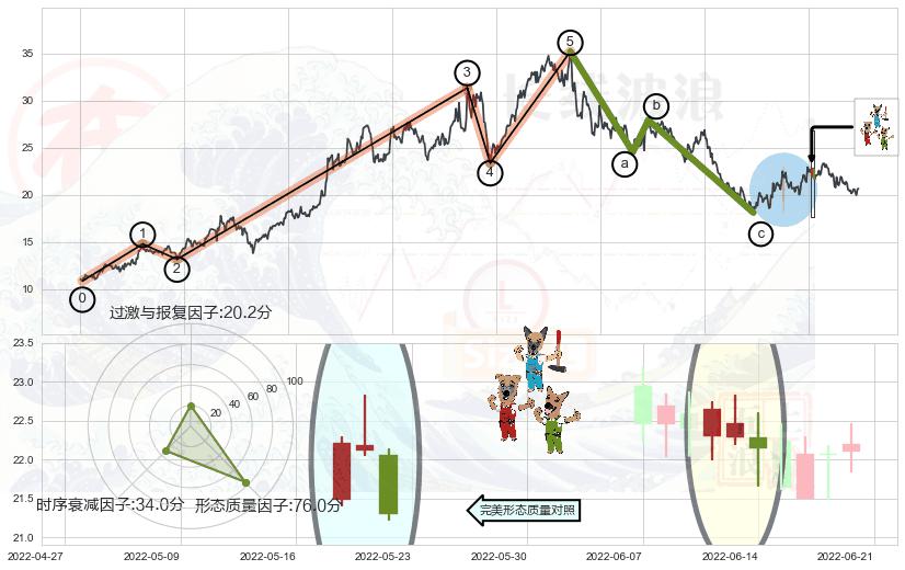 ➣ 看跌(高位倒锤头)流星线 + 波浪理论击穿破位C点继续下跌信号叠加后【反向回撤率】中等,【看空】信号叠加【存续影响中等】