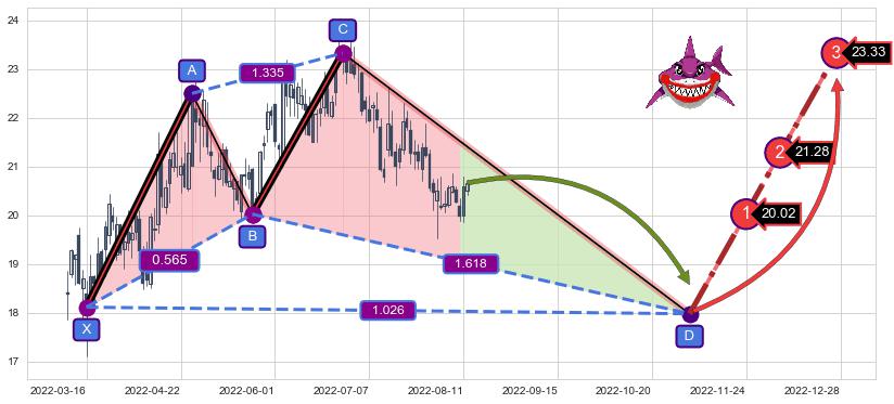 ➢ 未完成【鲨鱼】形态起点X: 2022-03-16, 已到达C点: 2022-06-28, 预测最终D点: 2022-11-03, 共159交易日