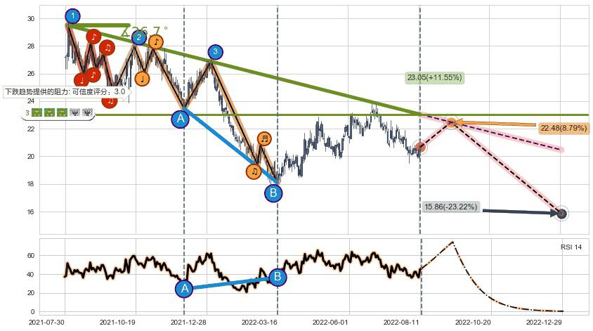♘ 阻力价格位23.04,可信任强度91.63%,距离最后交易2022-08-12形成的收盘价格20.66相差 +11.50%