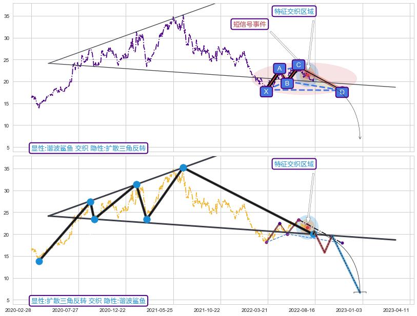 ➢ 谐波鲨鱼属【短级别信号事件】扩散三角反转属【长级别信号事件】长短周期组合信号事件, 短长事件长度比17.50%
