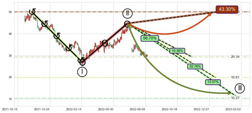 ➣ 循环浪继续向下【平均值】位置(2023-01-10, 19.81),匹配聚类样本比例57.78%, 可能性概率32.76%