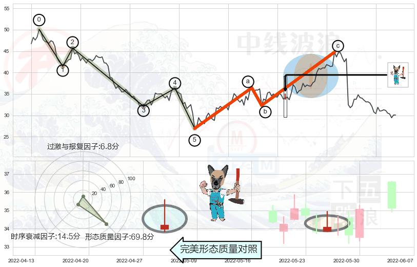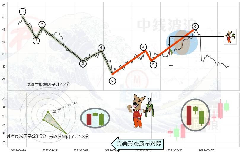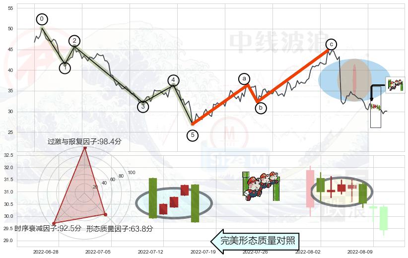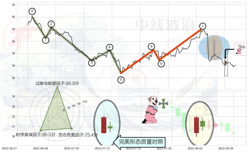 ➢ 射击之星形态 🔜 波浪理论c点反弹终止反转下跌 综合量化分数:45.24 【偏空】