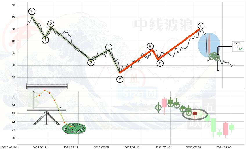 ➢ 波浪理论:猜想达到c点后小反弹终止反转下跌 → 下跌 → 【拐点】临近 → 阶段均值回复结束后继续大周期趋势跟踪