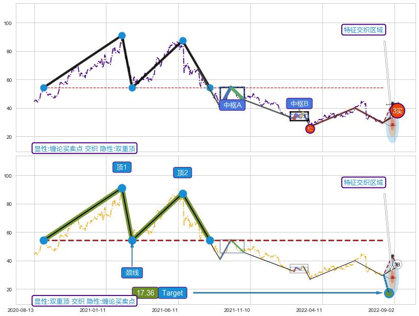 ➢ 双重顶:猜想预期下跌目标target即将达成,随后猜想强支撑来临,预期反弹上涨(均值回复)