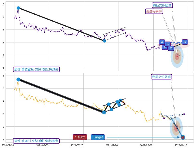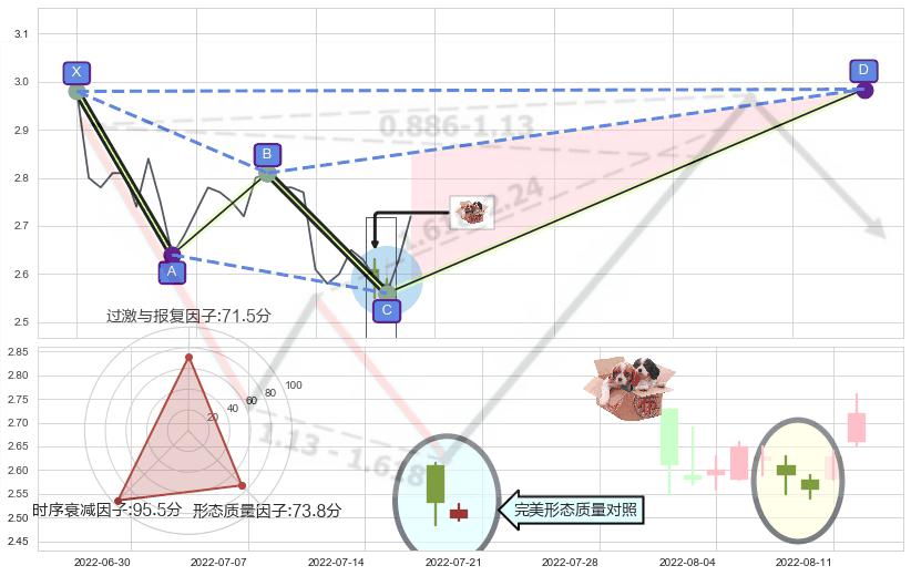 ➣ 未完成【鲨鱼】形态起点X: 2022-07-05, 已到达C点: 2022-08-10, 预测最终D点: 2022-10-05, 共67交易日