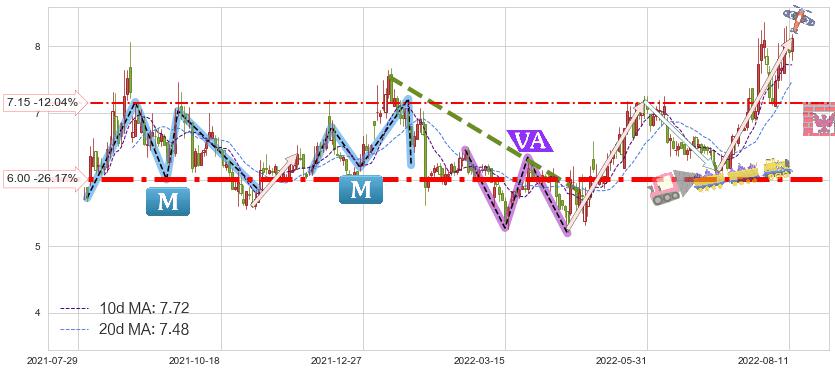 ♘ 支撑价格位7.15,可信任强度33.69%,距离最后交易2022-08-12形成的收盘价格8.13相差 -12.04%