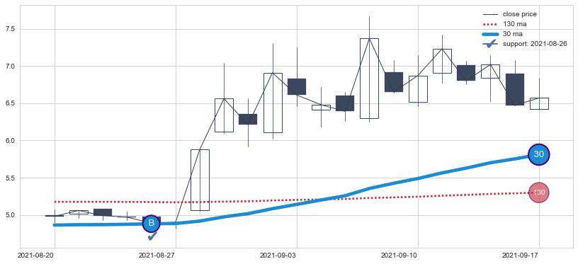 ➣ 70小时均线于(2022-07-08: 5.88)形成【金叉】基于【金叉历史模型】预测金叉后最高波峰价格: 7.19, 金叉后最高价格6.67,尚未达到预测最高波峰价格, 预期继续上涨