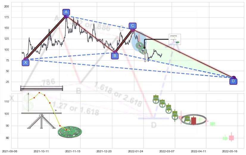 ➣ 未完成【蝴蝶】形态起点X: 2019-08-13, 已到达C点: 2021-12-21, 预测最终D点: 2024-01-30, 共1037交易日