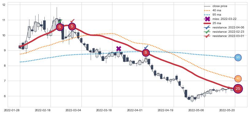 ➣ 34小时均线于(2022-05-30: 6.57)形成【金叉】基于【金叉历史模型】预测金叉后最高波峰价格: 7.94, 金叉后最高价格7.21,尚未达到预测最高波峰价格, 预期继续上涨