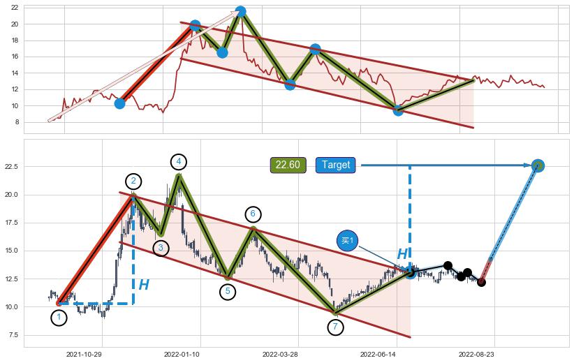 ➣ 最小中继整理涨幅→𝐇: 9.55 (𝐇旗杆的长度:旗杆起点→顶点)