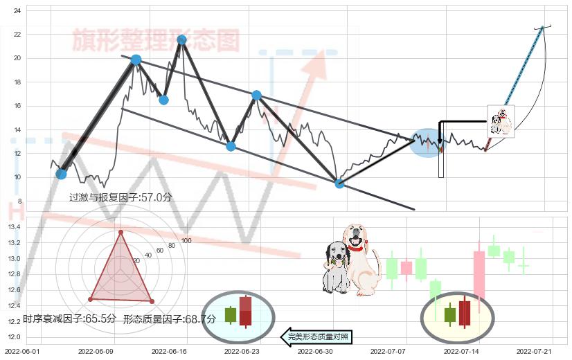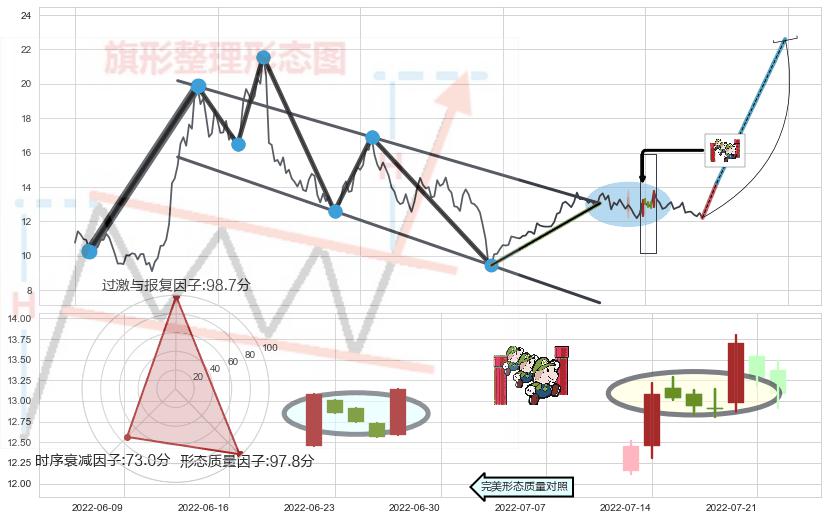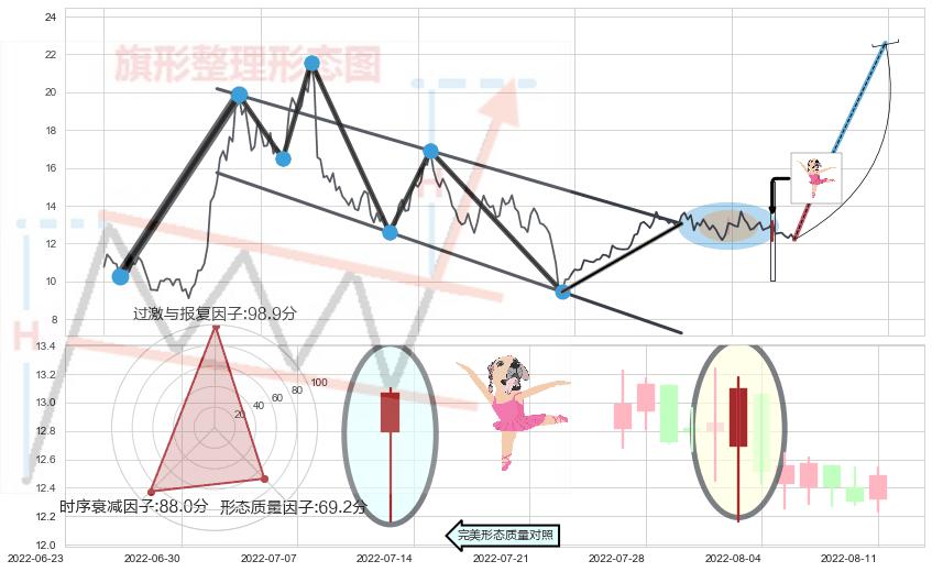 ➢ 【买1】: 激进型 买点 →(2022-06-23: 13.05 )形成突破降⚑旗形【整理】形态