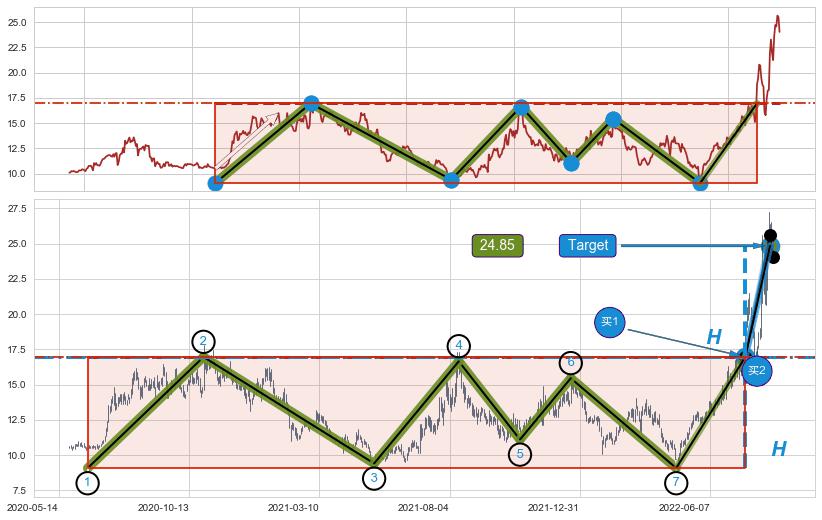 ➣ 【买2】: 保守型 买点 →(2022-07-27: 17.42 )形成上涨矩形整理突破后的【回抽确认】
