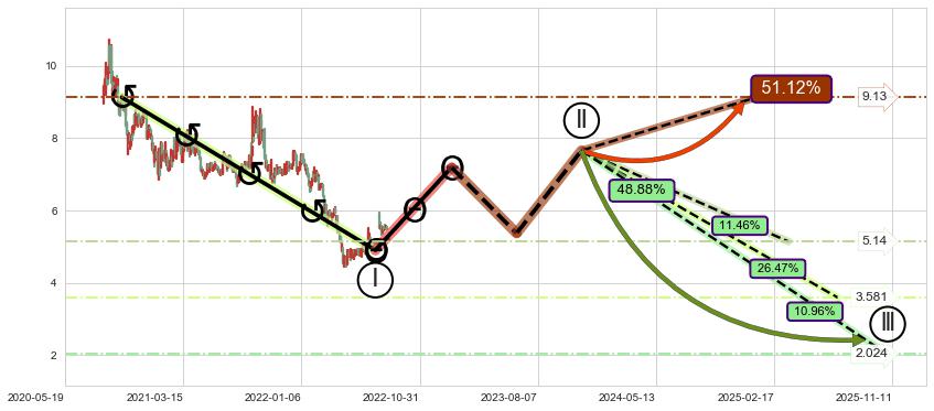 ➢ AI预测: 假定反转如期而至,第❶价格目标位置(2022-11-02, 7.14)