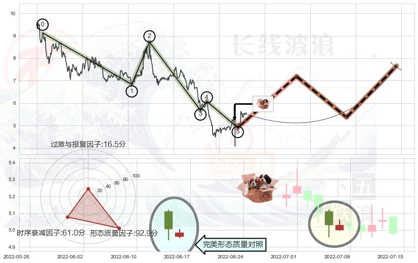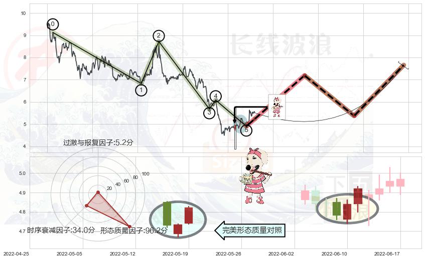 ➢ 🕰 价格走势在2022-06-10至2022-06-16期间形成低档五阳线,残存影响值:1.21
