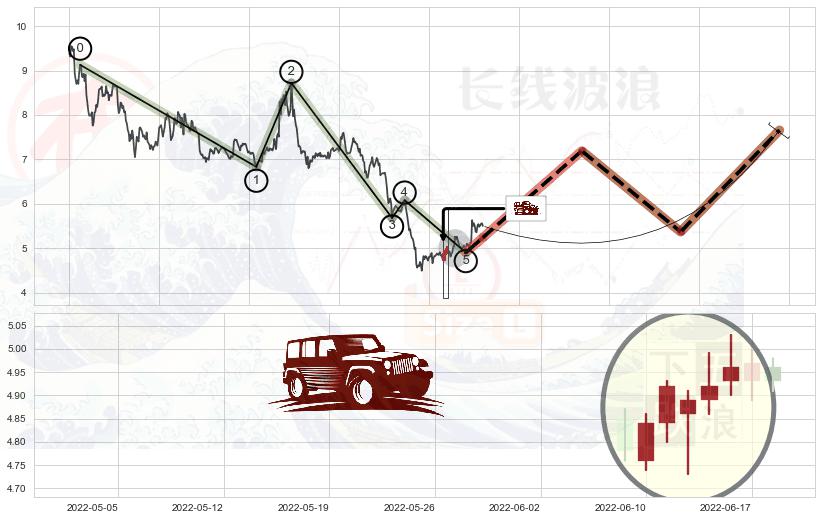 ➣ 波浪理论:猜想止跌 → 上涨 →【拐点】浪5已完成 → 大趋势均值回复