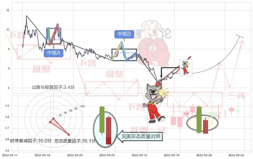 ➢ 智能识别已发生事件:缠论第一类买点【买❶】→(2022-05-06: 4.49 )