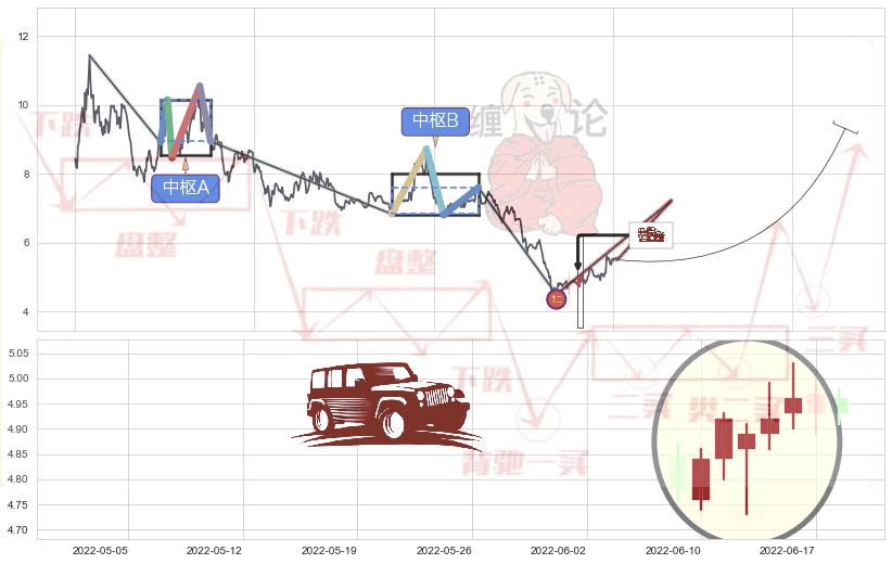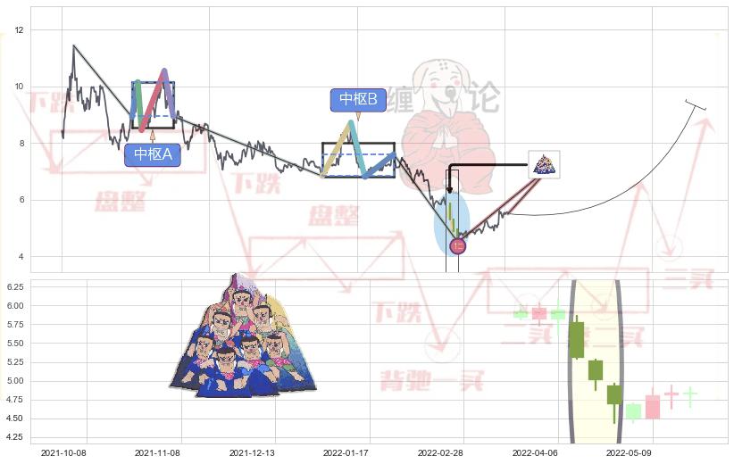 ➣ 【中枢B】:2021-07-28-2021-12-21,中枢由4笔构成,共98交易日, ZG=7.60, ZD=6.83