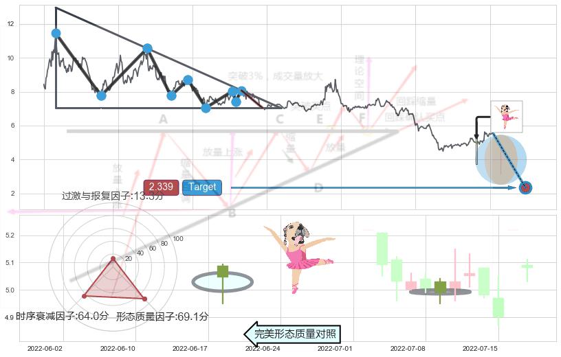 ➣ 早晨之星(黎明之星) + 下降三角整理临近target支撑拐点上涨信号叠加后【目标达成率】中等,【看多】信号叠加【存续影响中等】