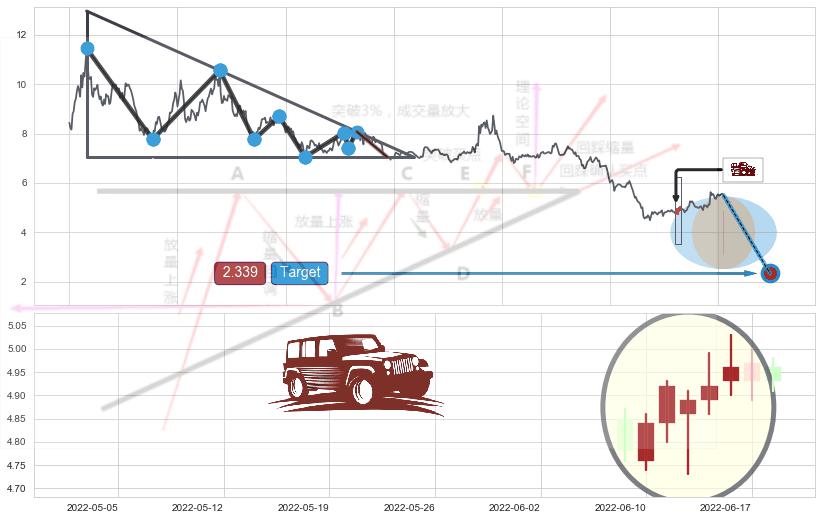 ➢ 【已确认突破】最后价格:5.50与最小【整理】第一目标价格→(2022-10-12: 2.339 )相较: 下跌空间【中等】