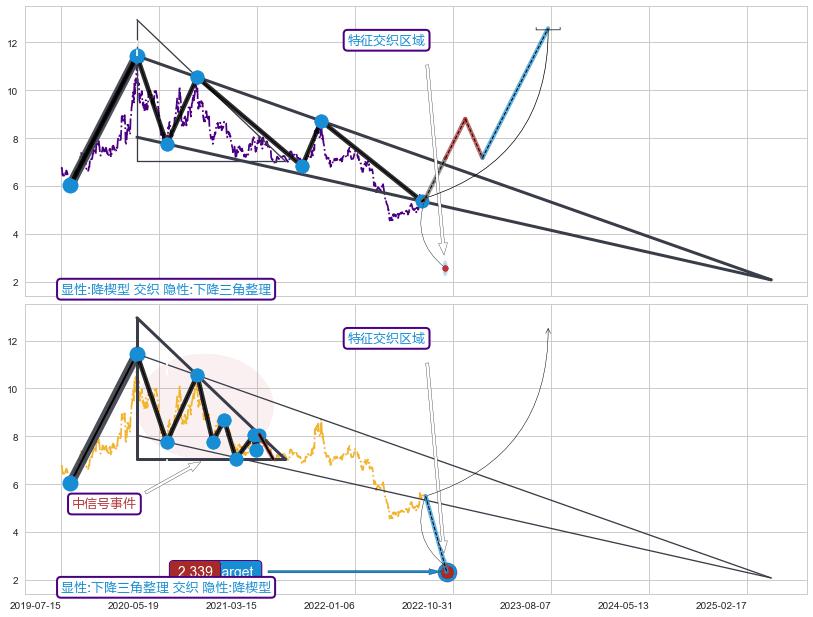 ➣ 【未确认突破,预测即将形成突破】降🚩楔型起点:2019-08-09, 预测突破点:2022-10-10,形态共767交易日
