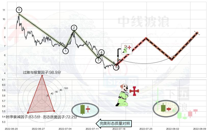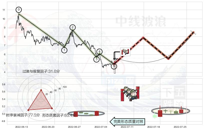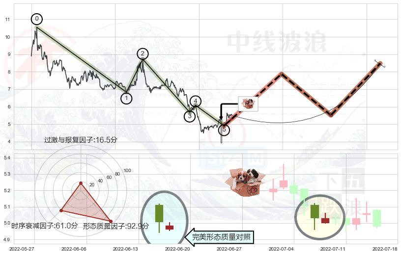 ➢ 曙光初现形态 🔜 波浪理论下跌浪:浪5反弹拐点 综合量化分数:53.82 【偏多】