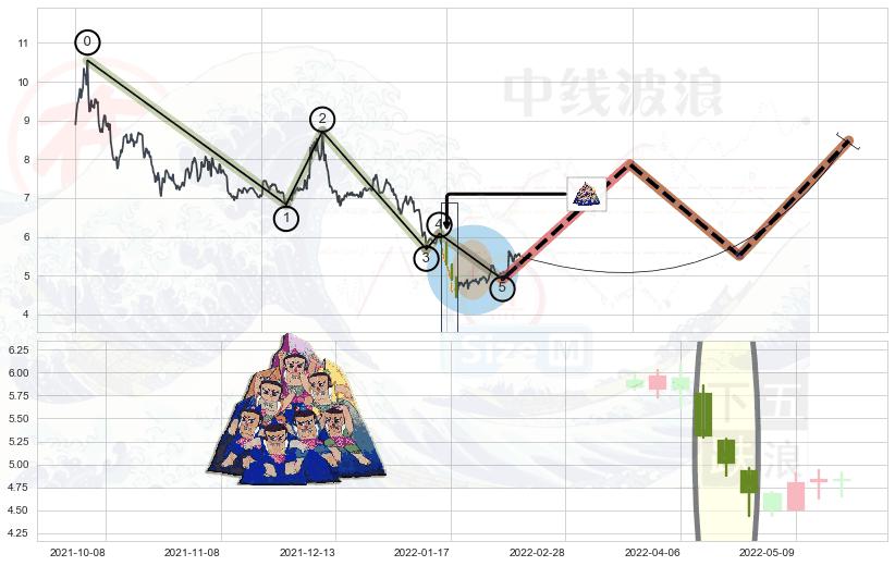 ➢ 循环浪继续向上【最低】位置(2022-12-12, 5.71),匹配聚类样本比例26.33%, 可能性概率11.79%