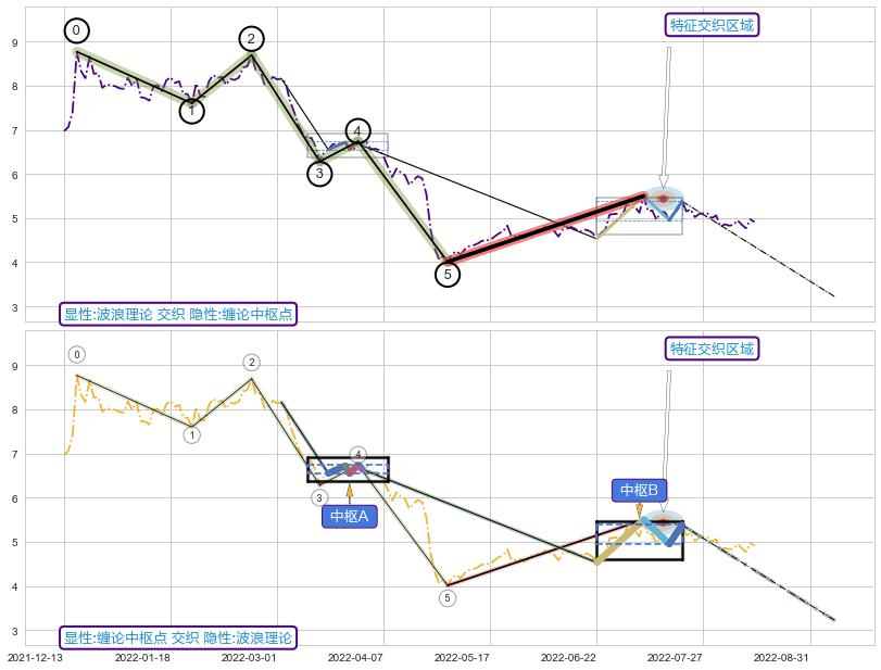 ➢ 波浪理论与缠论中枢点信号事件周期长度级别相同,同周期信号事件