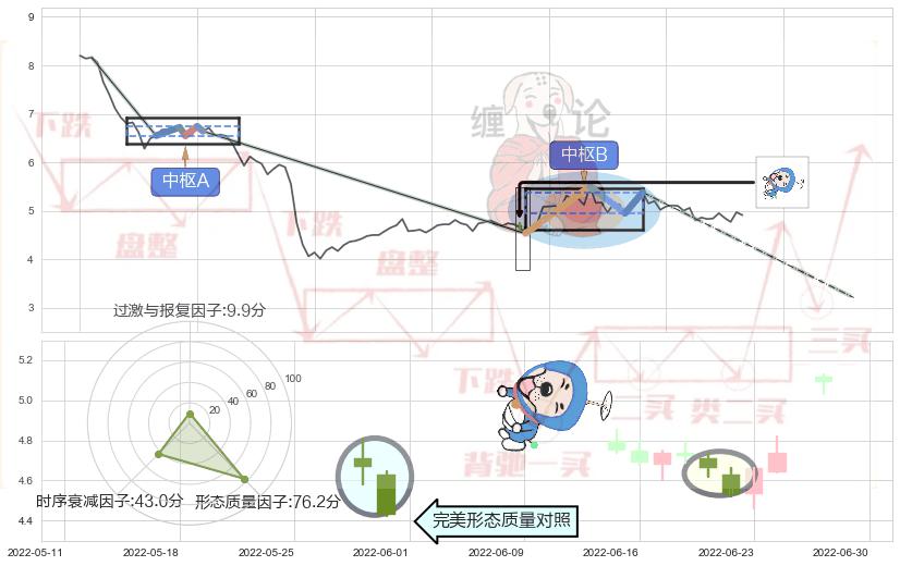 ➢ 下跌螺旋桨 🔜 缠论中枢点破位中枢B支撑下拉 综合量化分数:49.13 【中性】