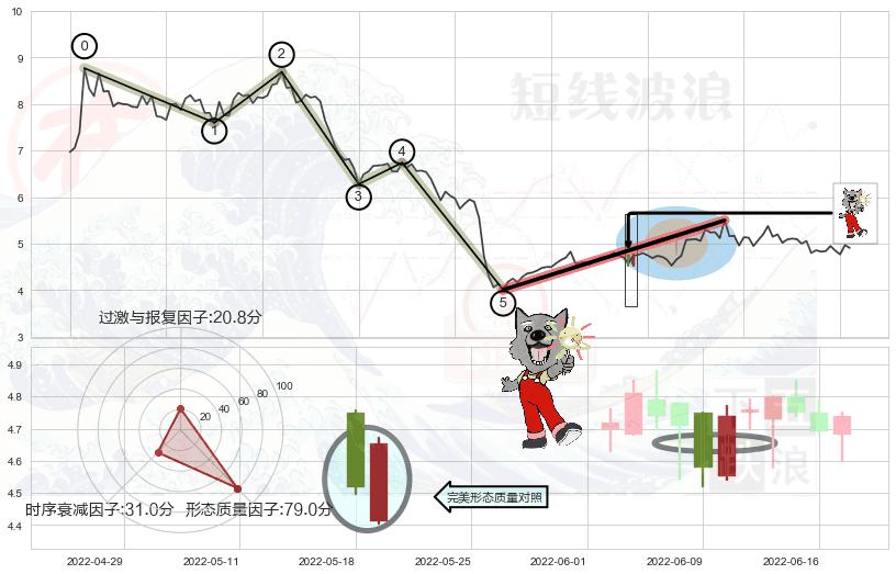 ➢ 🕰 价格走势在2022-05-30至2022-06-06期间形成低档五阳线,残存影响值:1.77