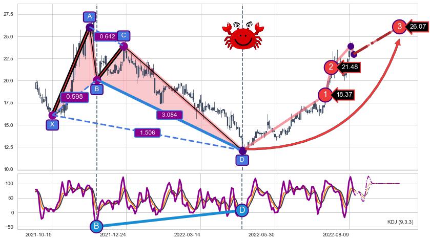➣ 已完成【螃蟹】形态起点X: 2021-10-15, 终点D: 2022-04-25, 共129交易日