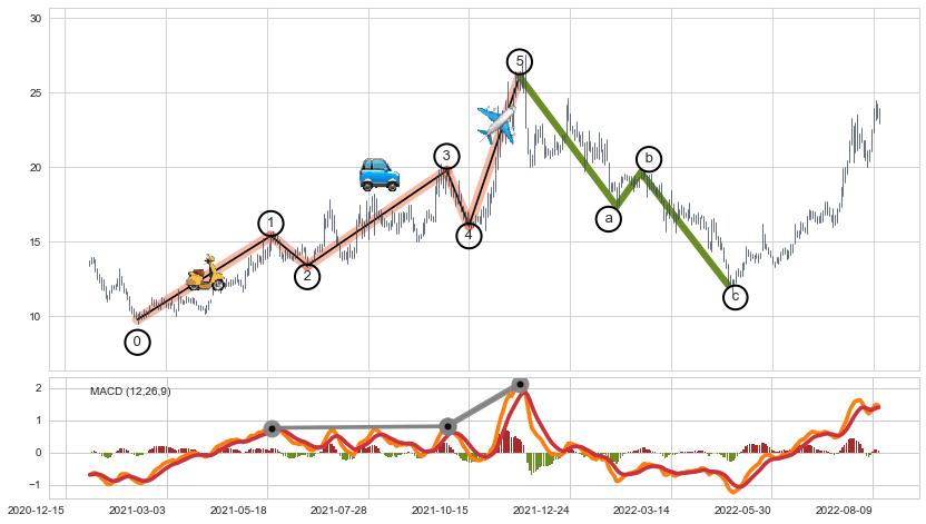 ➣ 第一, 三, 五浪上涨动能逐渐【增强变大】,趋势不断加固
