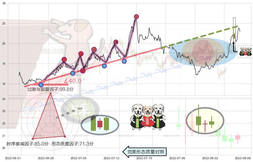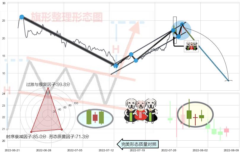 ➢ 🕰 价格走势在2022-07-28至2022-08-01期间形成两黑夹一红,残存影响值:-4.33
